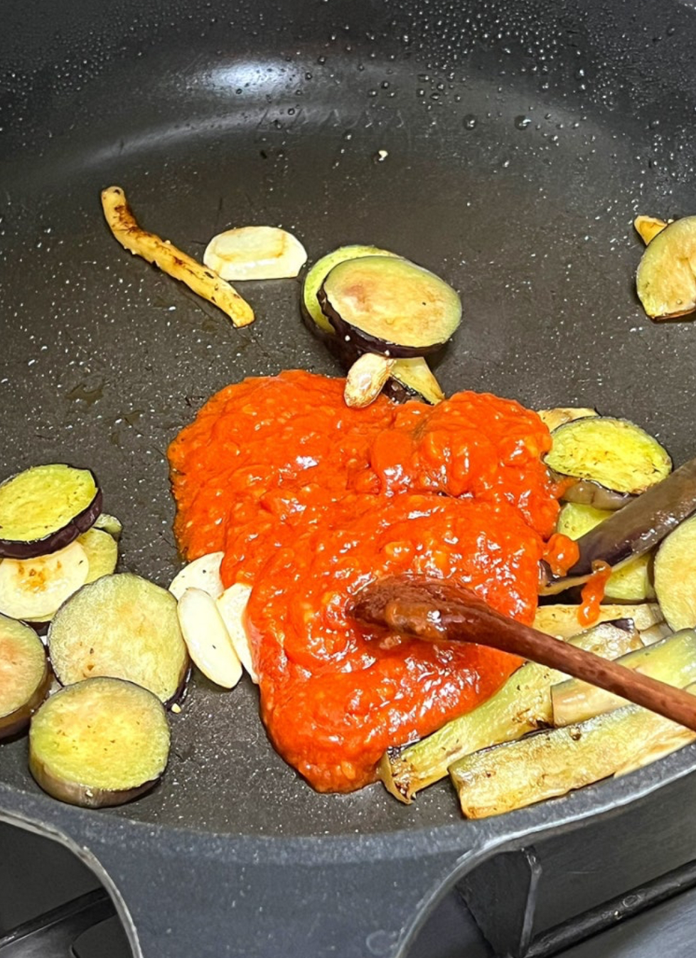 토마토소스에 녹진하게 잘 익은 가지가 너무 잘 어울렸어요